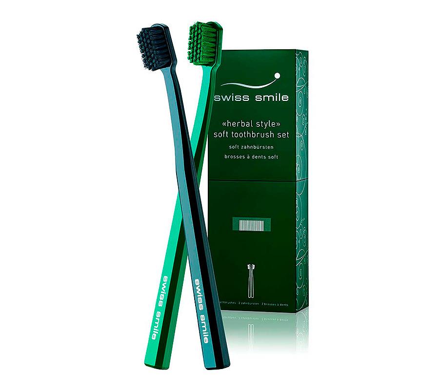 Набор из 2-х мягких зубных щёток Swiss Smile Базель (Basel) зелёный/чёрный.