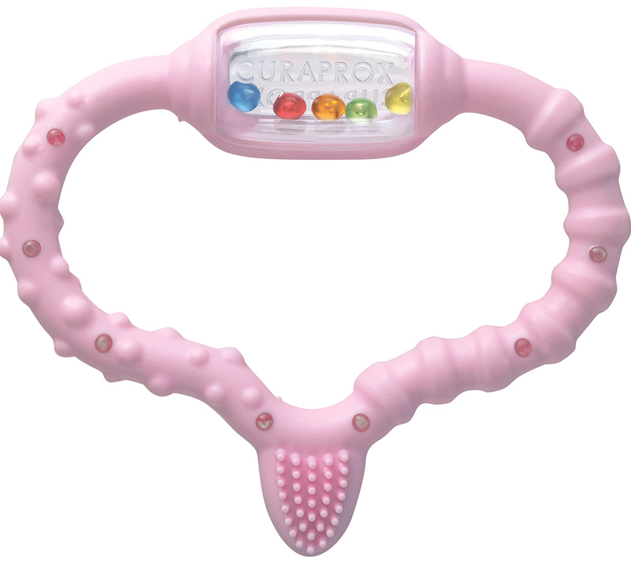 Массажная и одновременно обучающая зубная щетка на прорезывателе является прекрасным инструментом для подготовки малыша к первой детской зубной щетке CURAKID.